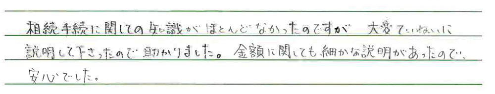 当事務所では、接客力・サービス力を強化する目的で、手続完了後にアンケートを実施しております。その一部をご覧ください。